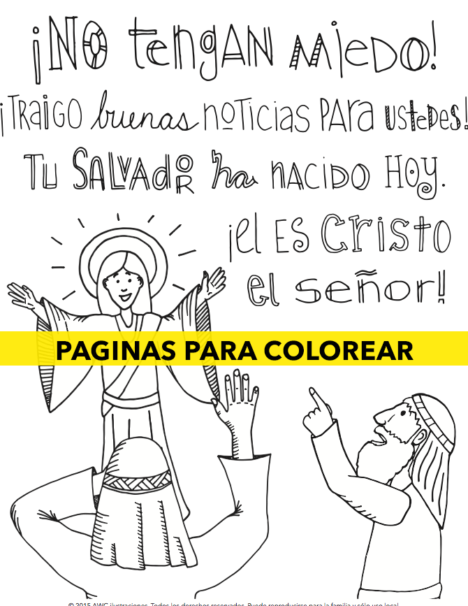 Five Bible Story Coloring Sheets: There are five coloring sheets that tell the story of the birth of Jesus.